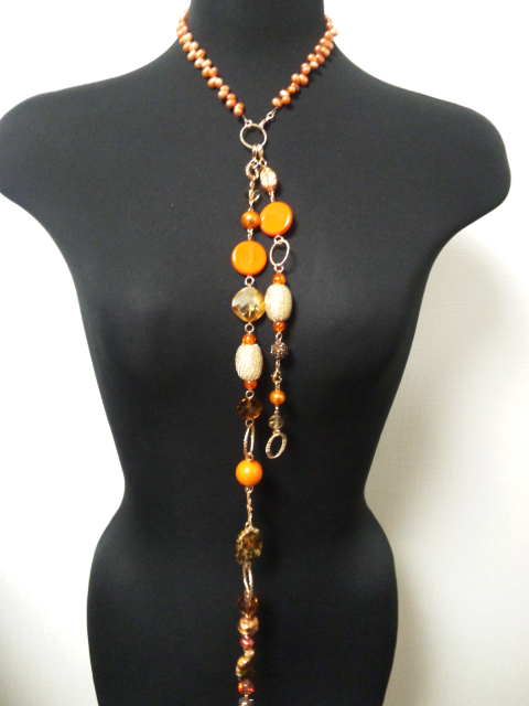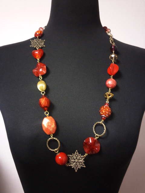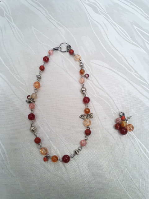 No.8 Necklace 12800yen (カーネリアン、メノウ、クラック水晶、スポンジ珊瑚等を使用) (トップが取り外しできます) (SOLD OUT) |