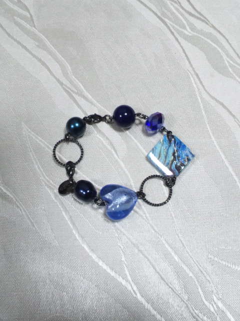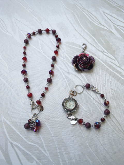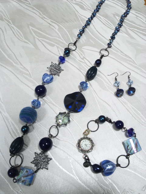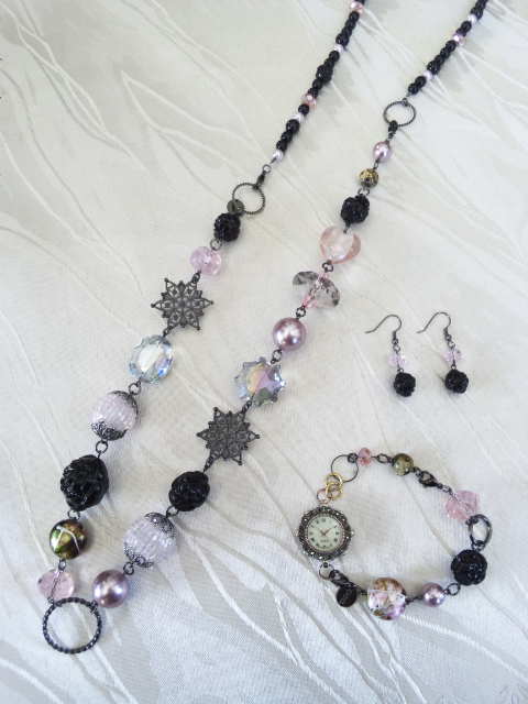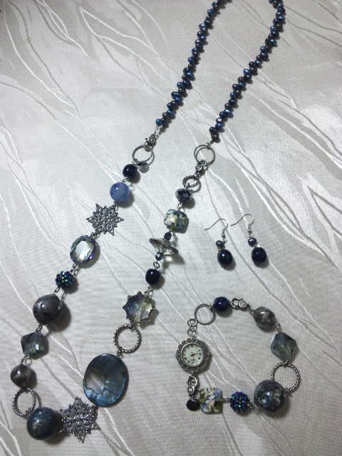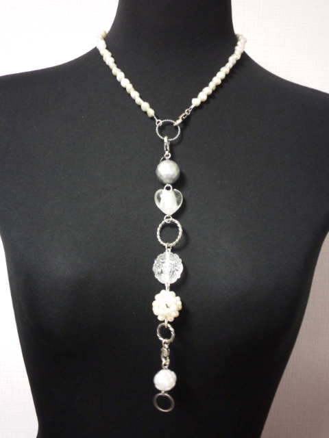 No.12 Necklace 15800yen (SOLD OUT) Wrist Watch 9900yen (ブレスレットのみ7900yen) (淡水パール、インポートビーズ、ガラス等を使用) (ブレスレットをプラスすると色々とアレンジできます) |