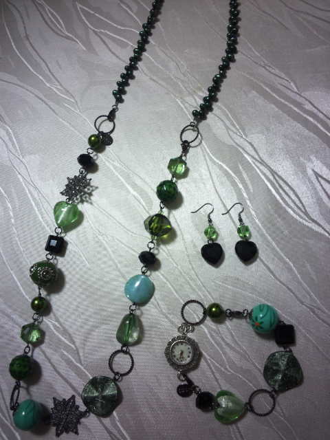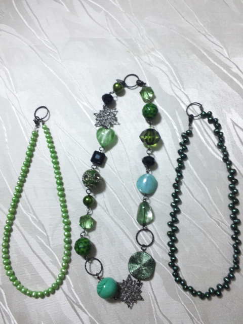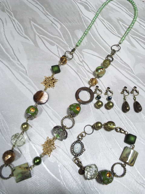 No.4 Necklace 15800yen グリーン淡水パールNecklace 5000yen Wrist Watch 9900yen (Braceletのみ7900yen) Pierce 2900yen (淡水パール、アメリカンビーズ等を使用) (Necklaceがショートになります) (全てSOLD OUT) |