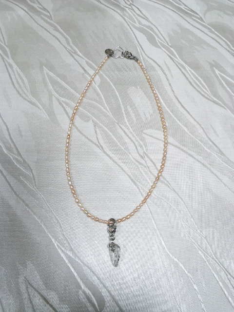 No.7 Necklace 7900yen (淡水パール、水晶の羽を使用) (トップが取り外しできます) (SOLD OUT) |