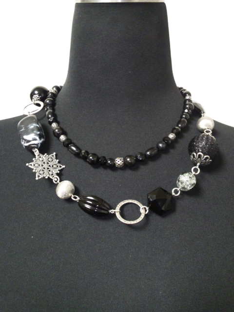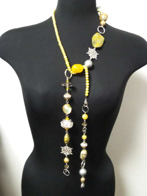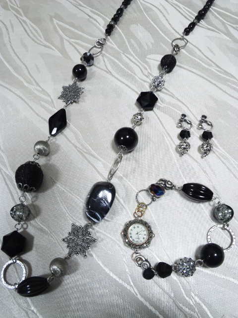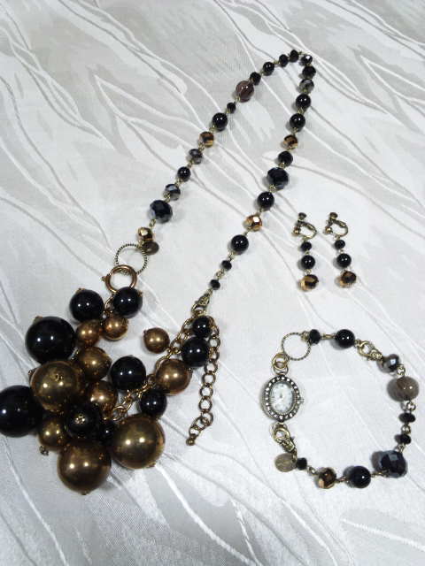 No.23 Necklace 9800yen Wrist Watch 8900yen (ブレスレットのみ6900yen) Ear Ring 2900yen (オニキス、チベットメノウ等を使用) ジャラジャラブレスレット 12800yen (インポートヴィンテージビーズを使用) (全て取り外しができるので、アレンジができます) (SOLD OUT) |