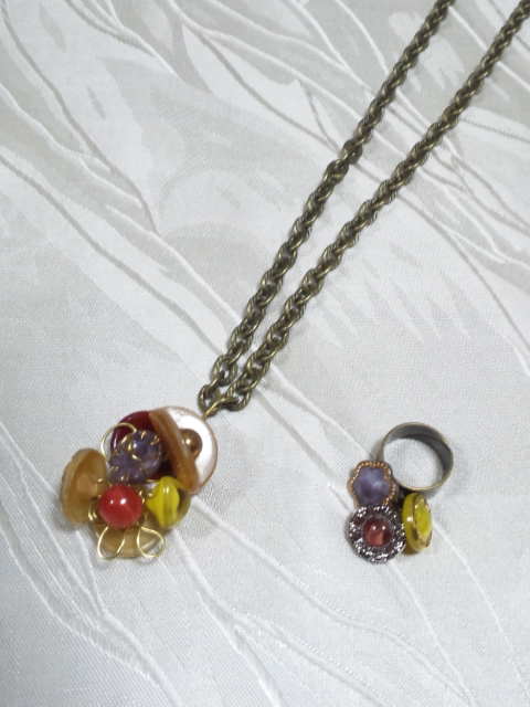 No.17 Necklace 9800yen Ring 6900yen (アメリカンヴィンテージボタンを使用) |