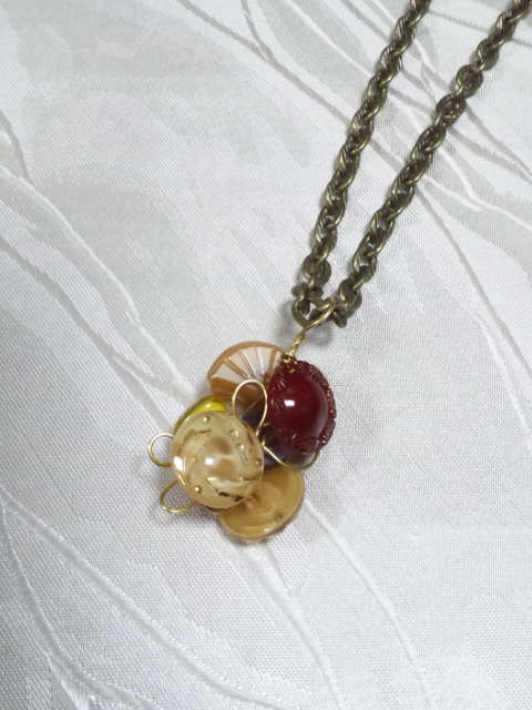 No.19 Necklace 9800yen (フランス50'sヴィンテージビーズ、アメリカンヴィンテージボタンを使用) (SOLD OUT) |