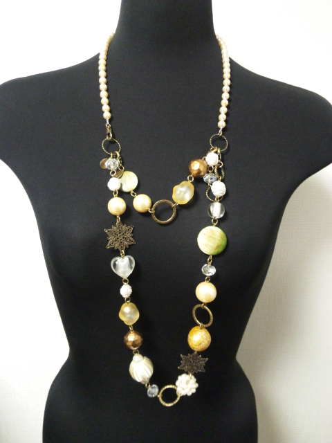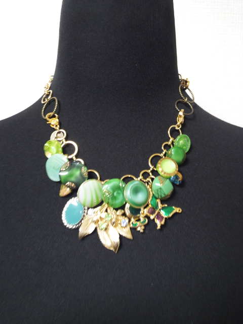 No.18 Necklace 9800yen (フランス50'sヴィンテージビーズ、アメリカンヴィンテージボタンを使用) (SOLD OUT) |