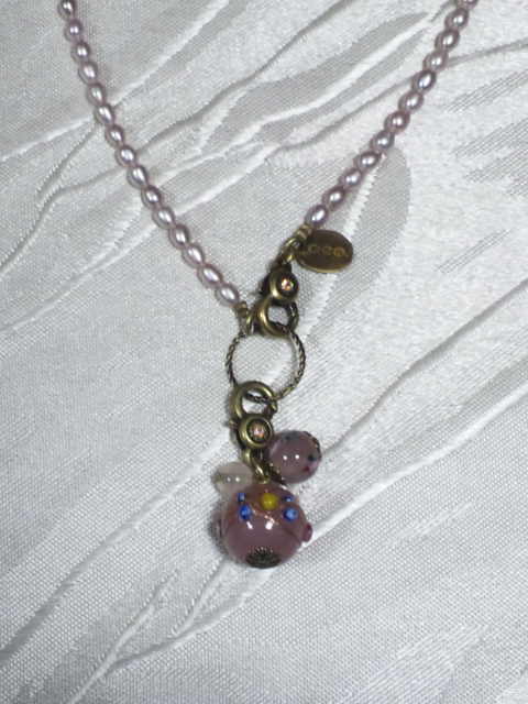 No.3 ネックレス 10000円 (淡水パール、イギリスヴィンテージ・ヴェネチアンビーズを使用) (トップが取り外しできます) |