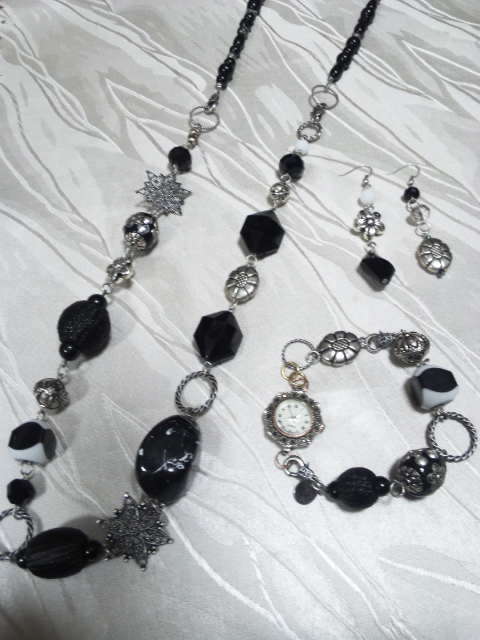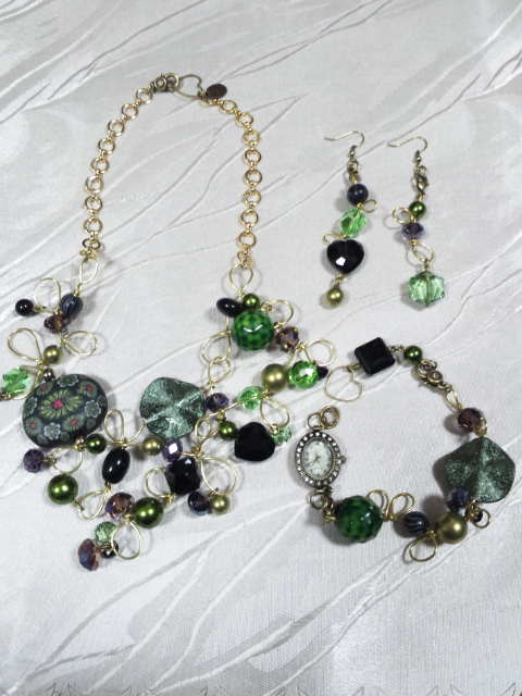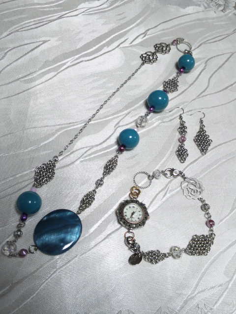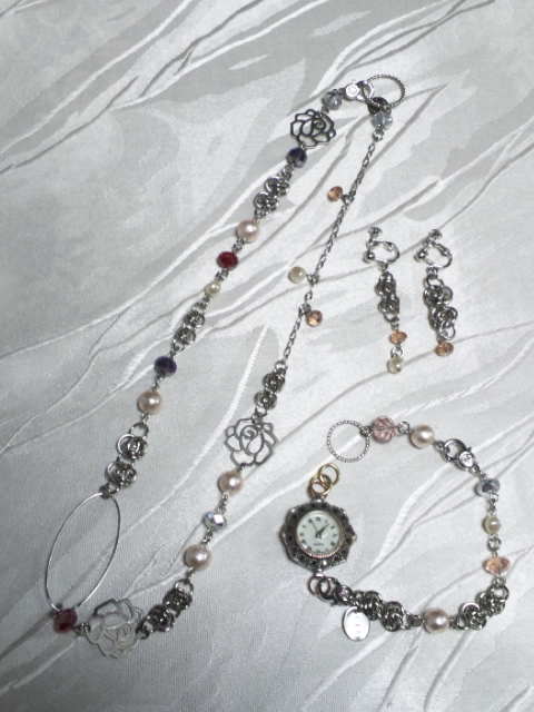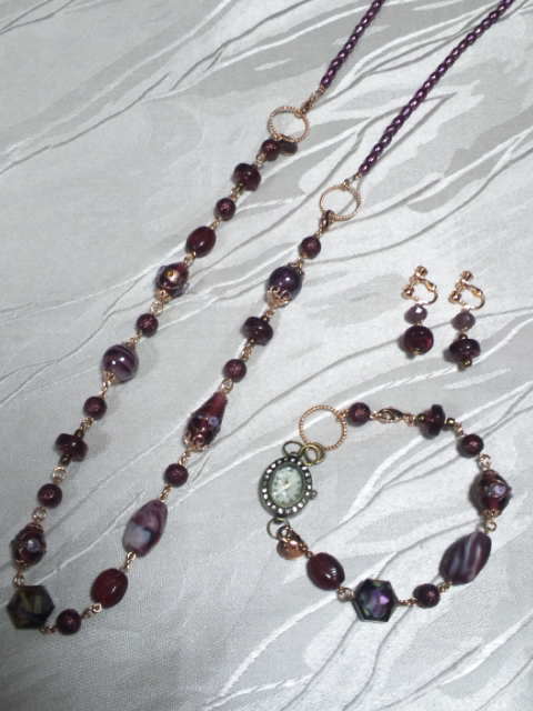 No.5 ネックレス 15800円 時計 9800円 (ブレスレットのみ7900円) ピアス 5900円 (アメリカンビーズ等を使用) (ブレスレットを繋げると色々アレンジができます) |