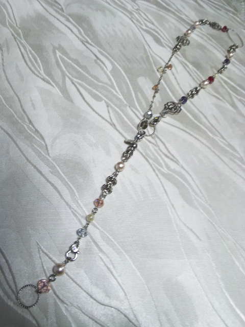No.4 ネックレス 18000円 時計 10800円 (ブレスレットのみ8900円) イヤリング 5900円 (淡水パール、イギリスヴィンテージ・ヴェネチアンビーズ、アメリカンビーズを使用) (ブレスレットを繋げると色々アレンジができます) (全てSOLD OUT) |