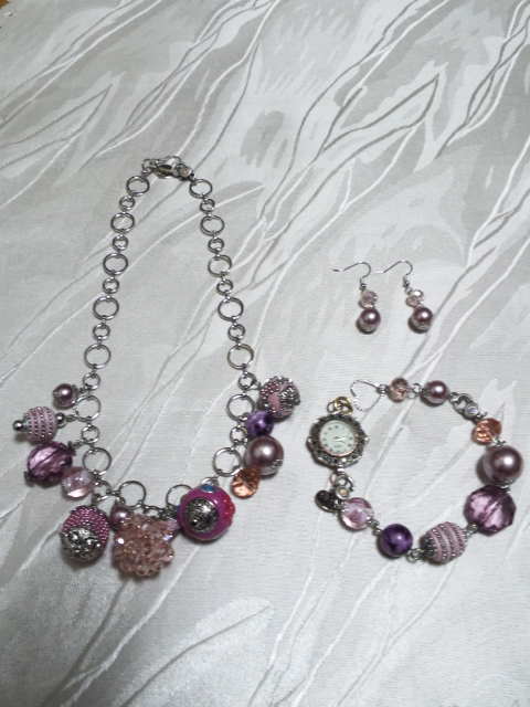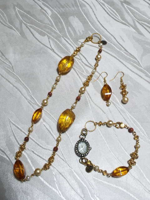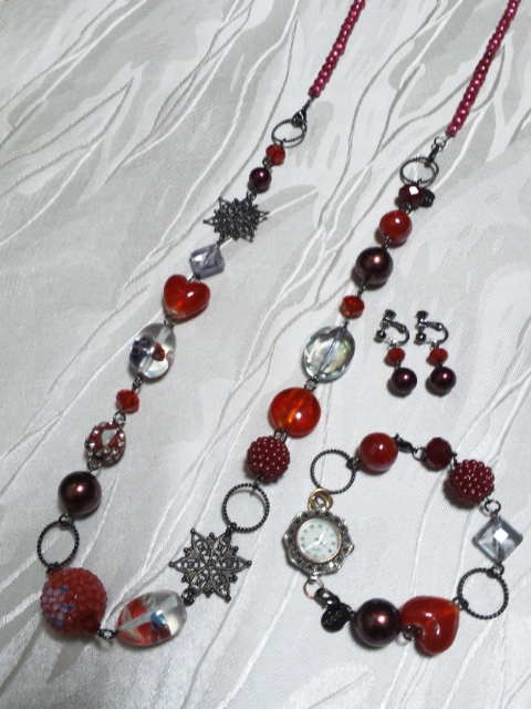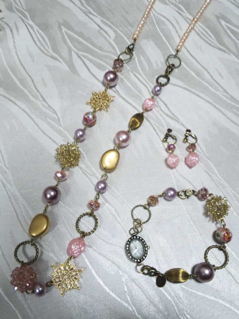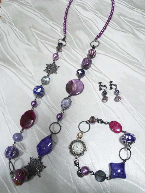 No.8 ネックレス 15800円 時計 9900円 (ブレスレットのみ7900円) ピアス 2900円 (アメリカンビーズ等を使用) (ブレスレットを繋げると色々とアレンジできます) |