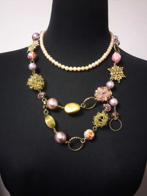 No.6 ネックレス 15800円 時計 9900円 (ブレスレットのみ7900円) イヤリング 2900円 (淡水パール、ヴィンテージパーツ等を使用) (ブレスレットを繋げると色々とアレンジできます) |