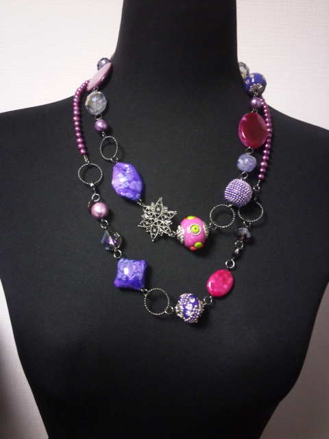 No.4 ネックレス 15800円 時計 10900円 (ブレスレットのみ8900円) ピアス 5900円 (イギリスヴィンテージ・ヴェネチアンビーズ等を使用) (ブレスレットを繋げると色々とアレンジできます) |