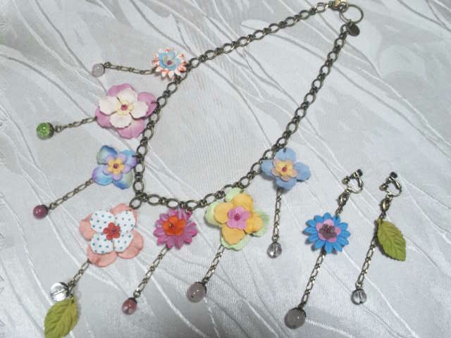 No.1 ネックレス 15800円 ピアス 3900円 (ペーパーフラワー等を使用) (全てSOLD OUT) |