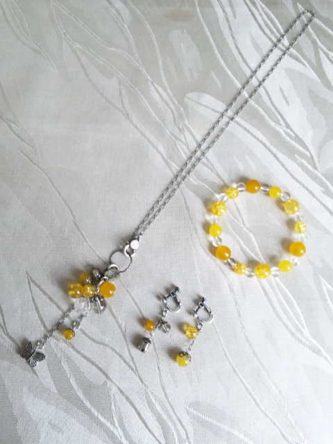 No.11 ネックレス 6900円 ブレスレットM 7900円 イヤリング 5900円 (翡翠、水晶、クラック水晶等を使用) (トップは取り外しができます) |